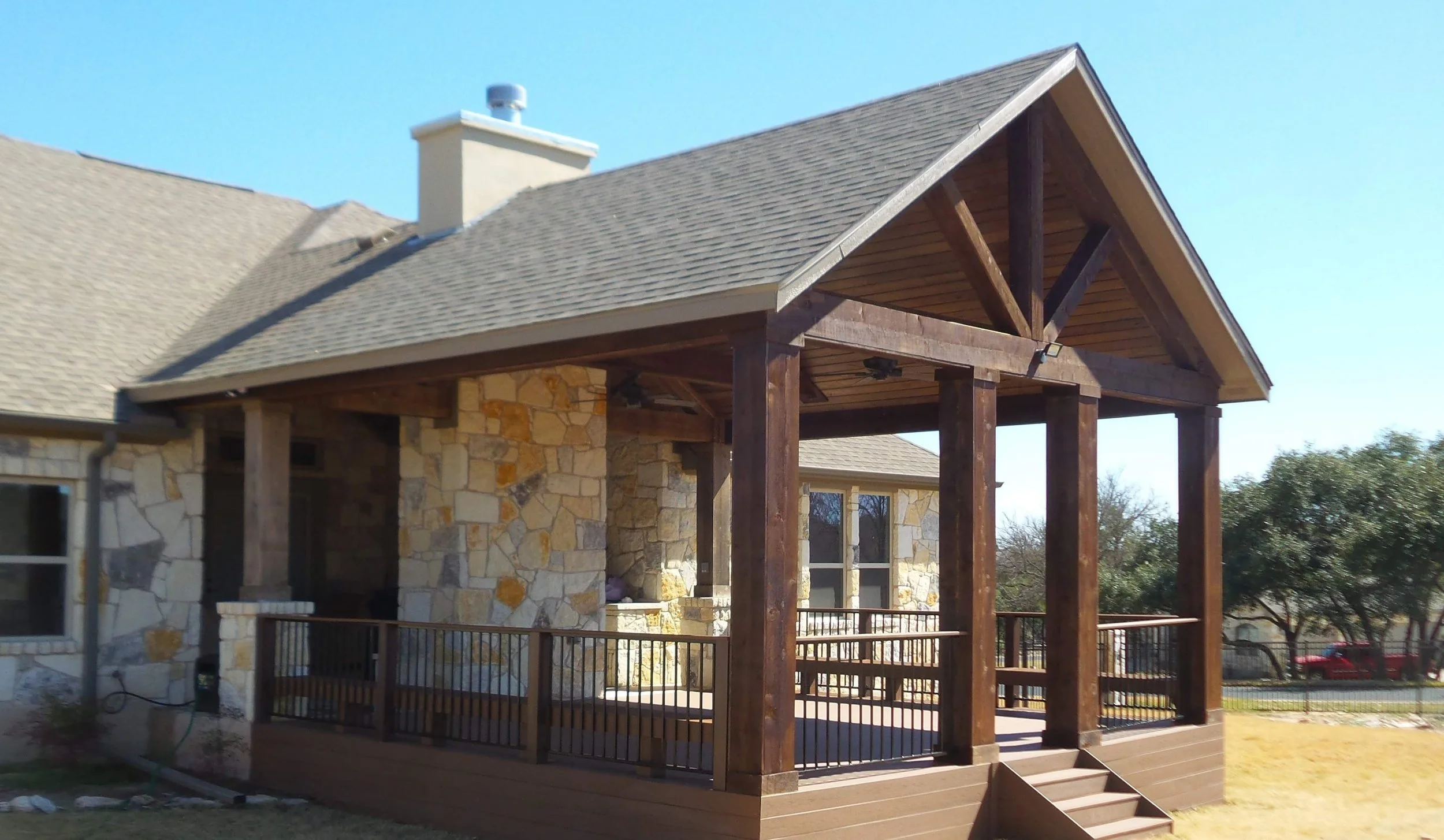 Space is always a critical factor, especially in the outdoors. We enjoy building this particular project for one of our beloved militaries retired. In this project we continue the same pattern as the original in the house, we decided to also build a bench all along the composite deck along the metal railing. The finishes in the roof were chosen by the homeowner after presented with various options. Our carpentry team is great, and we do pay special attention to details.